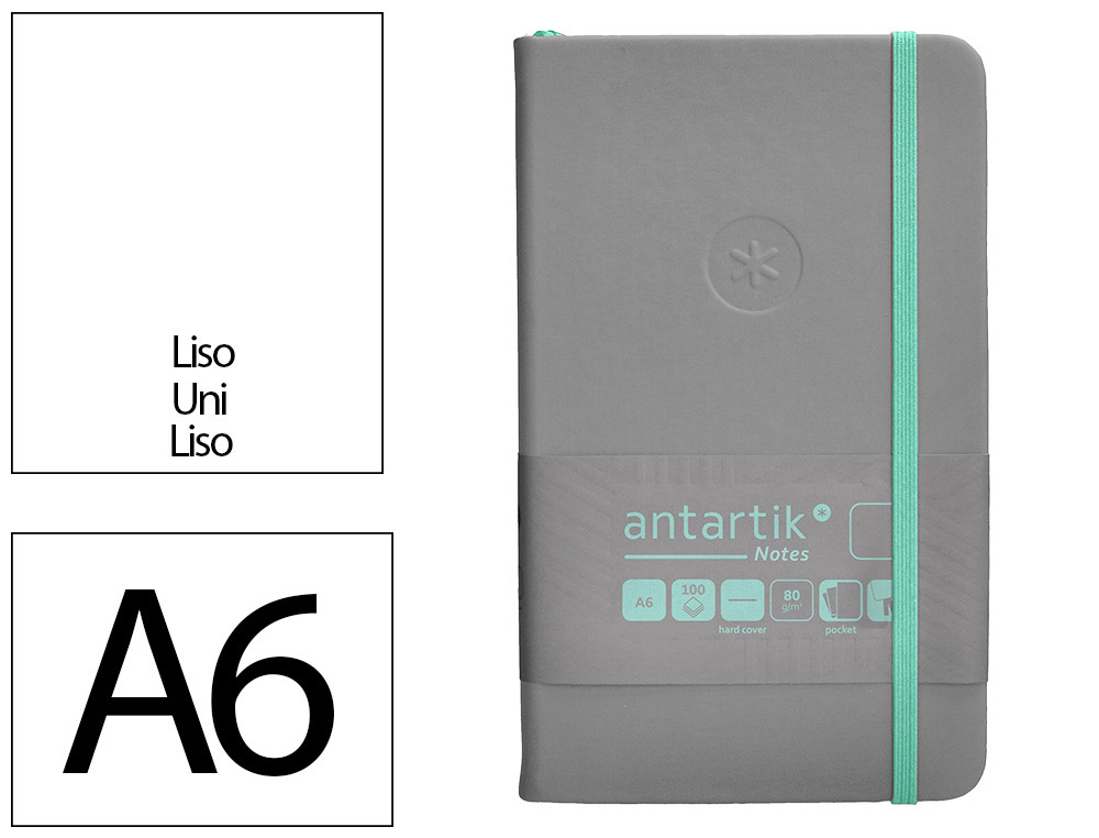 Cuaderno con gomilla antartik notes tapa dura a6 hojas lisas turquesa 100 hojas 80 gr fsc