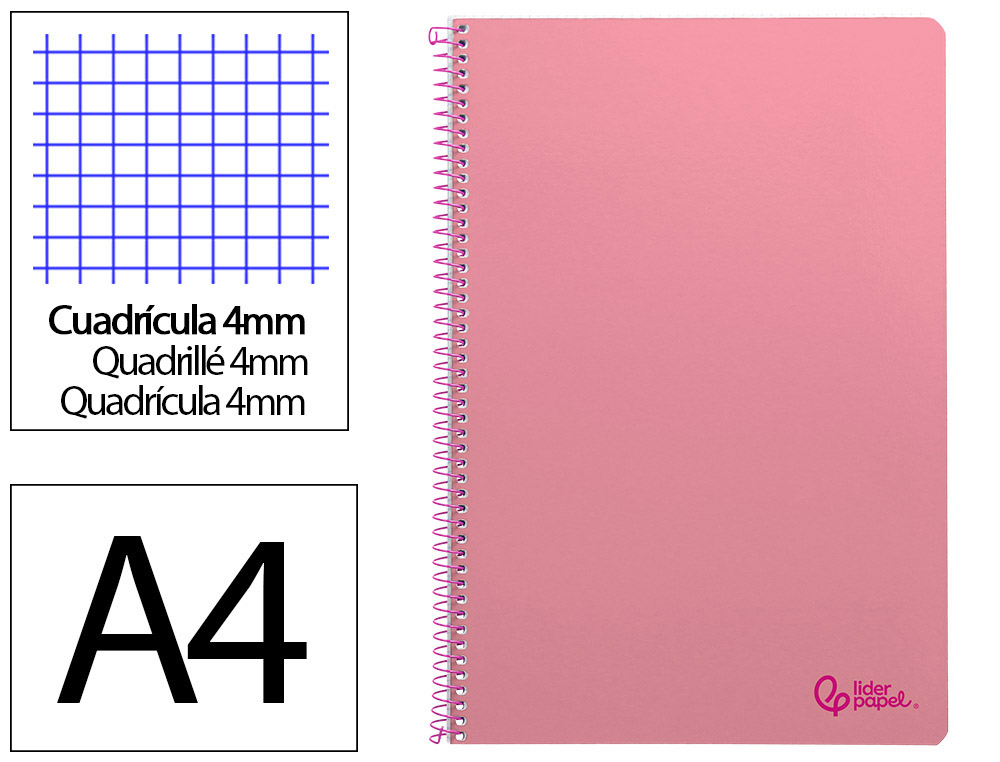 Cuaderno espiral liderpapel a4 smart tapa blanda 80h 75gr cuadro 4mm con margen color rojo