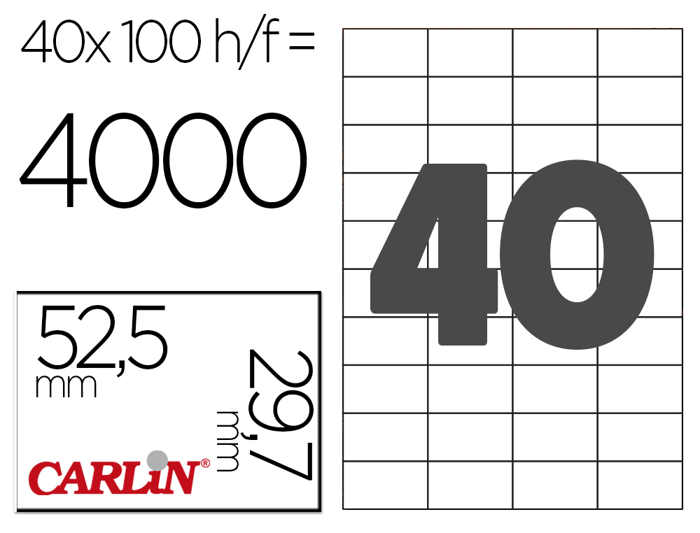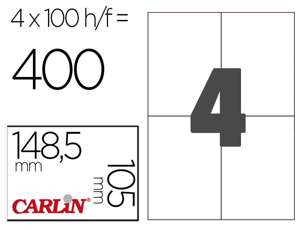 Etiqueta adhesiva carlin 210x297 mm fotocopiadora laser ink-jet caja de 100 hojas din a4