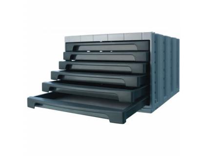 Este fichero modular de cinco cajones es la solución ideal para mantener tus documentos organizados de manera eficiente y profesional. Su diseño apilable permite maximizar el espacio en oficinas o cualquier entorno que requiera gestión documental sin sacrificar la estética.