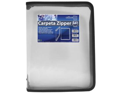 Carpeta office box zipper din a4+ polipropileno con cremallera y borde de tela color rojo